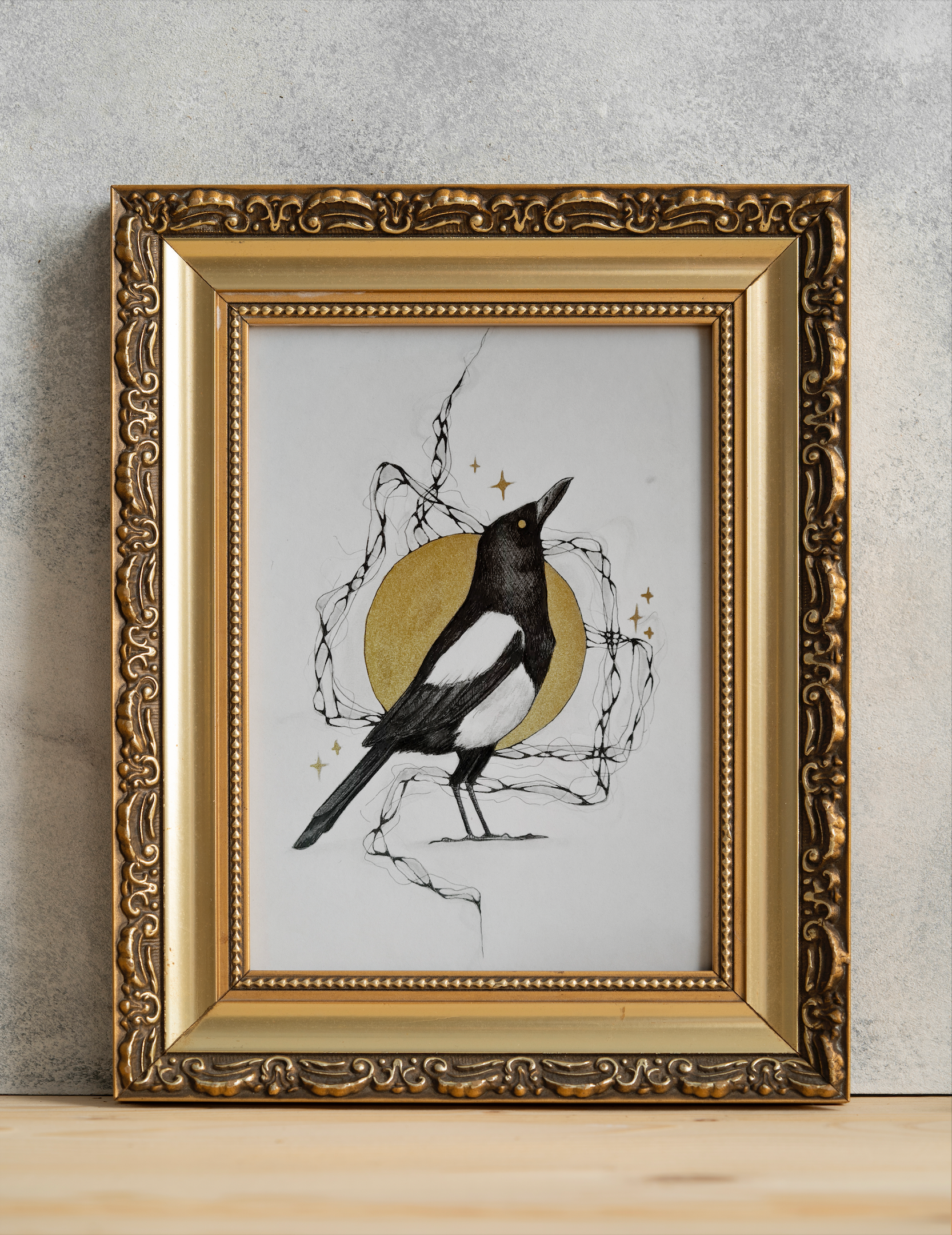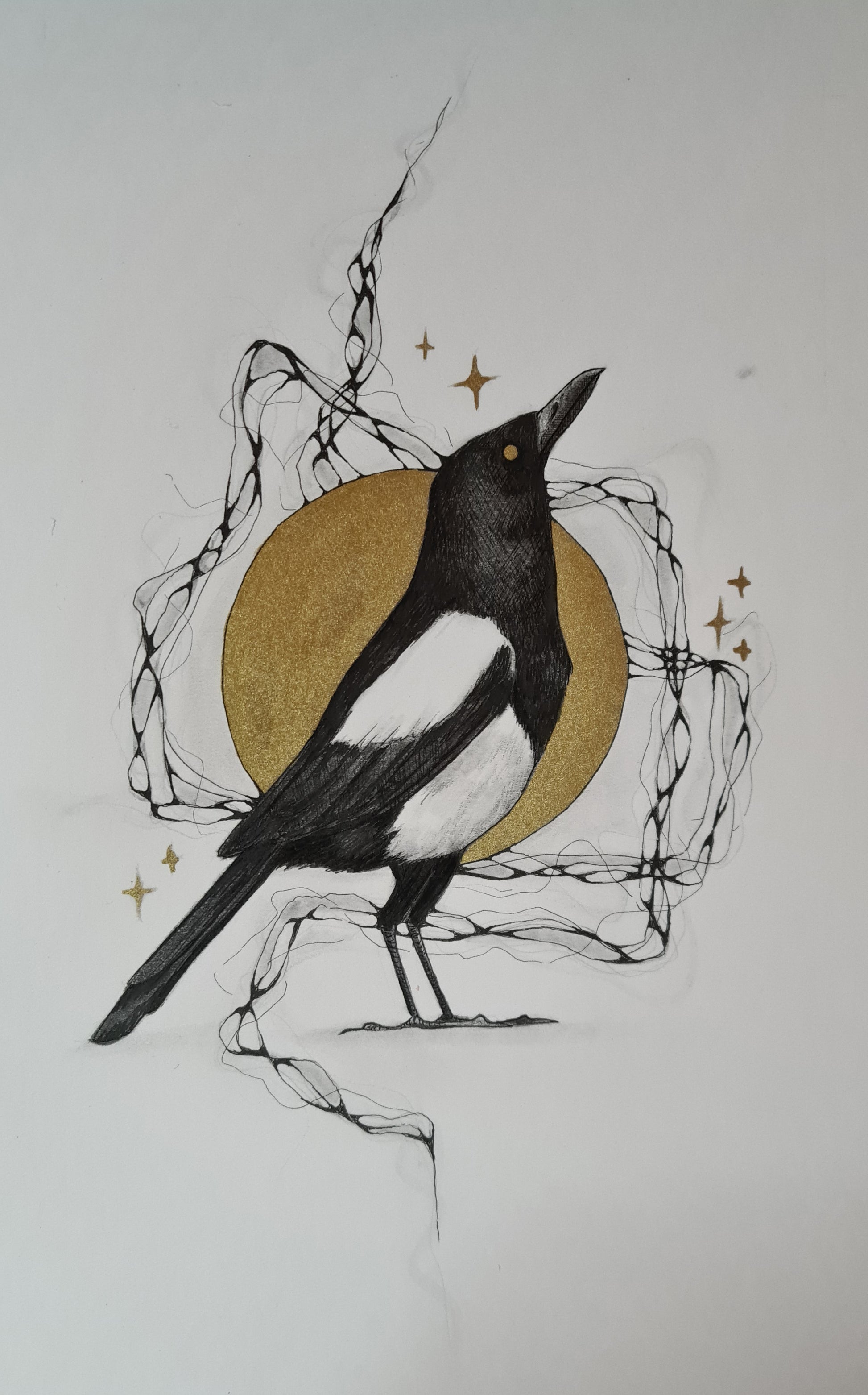 « De vieilles légendes racontent que la pie, est l’oiseau messager de bonne chance.