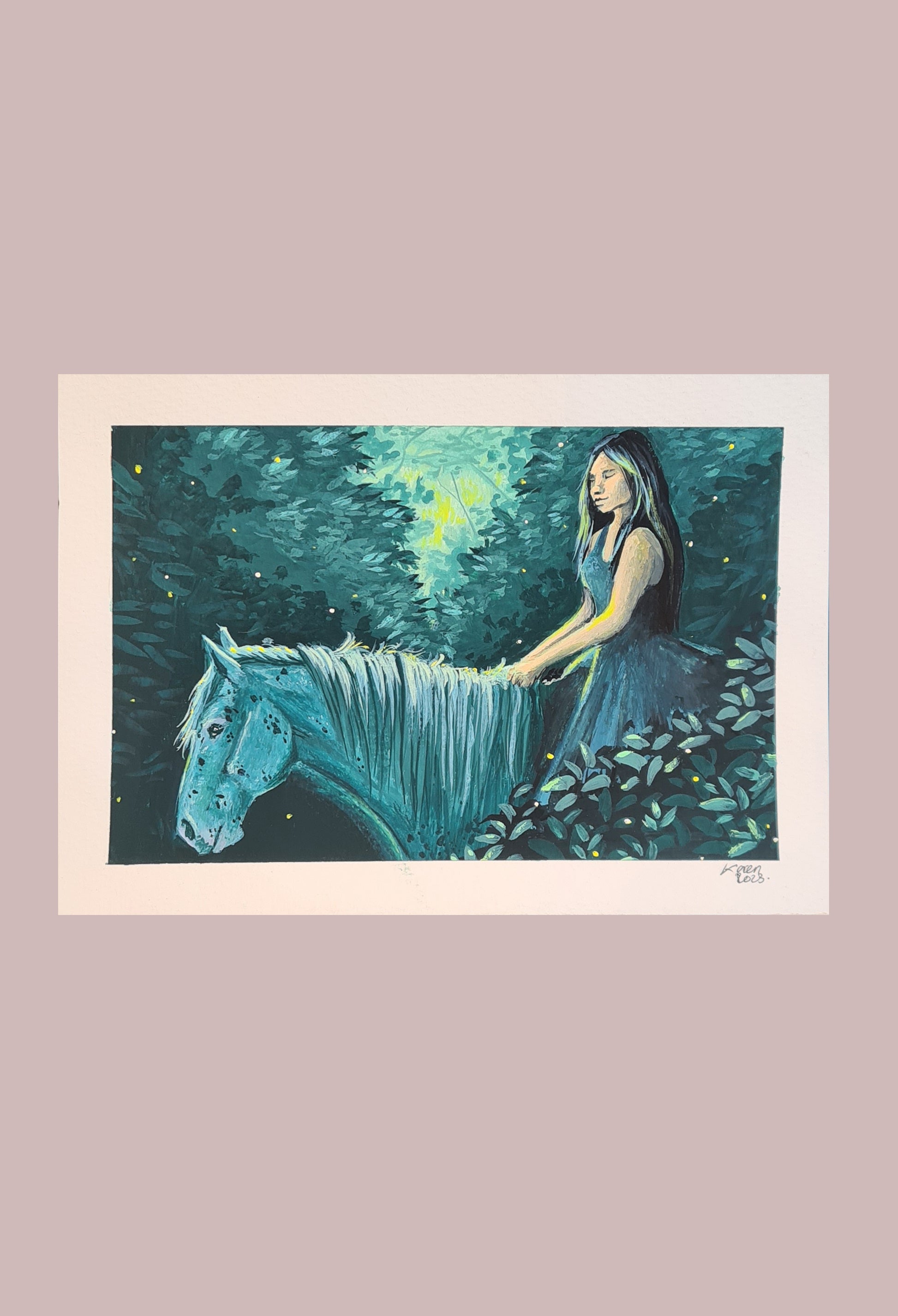 Comme dans un rêve bleu, cette peinture rend hommage à la belle amitié qui m'a lié pendant plus de 10 ans, à un cheval extraordinaire.