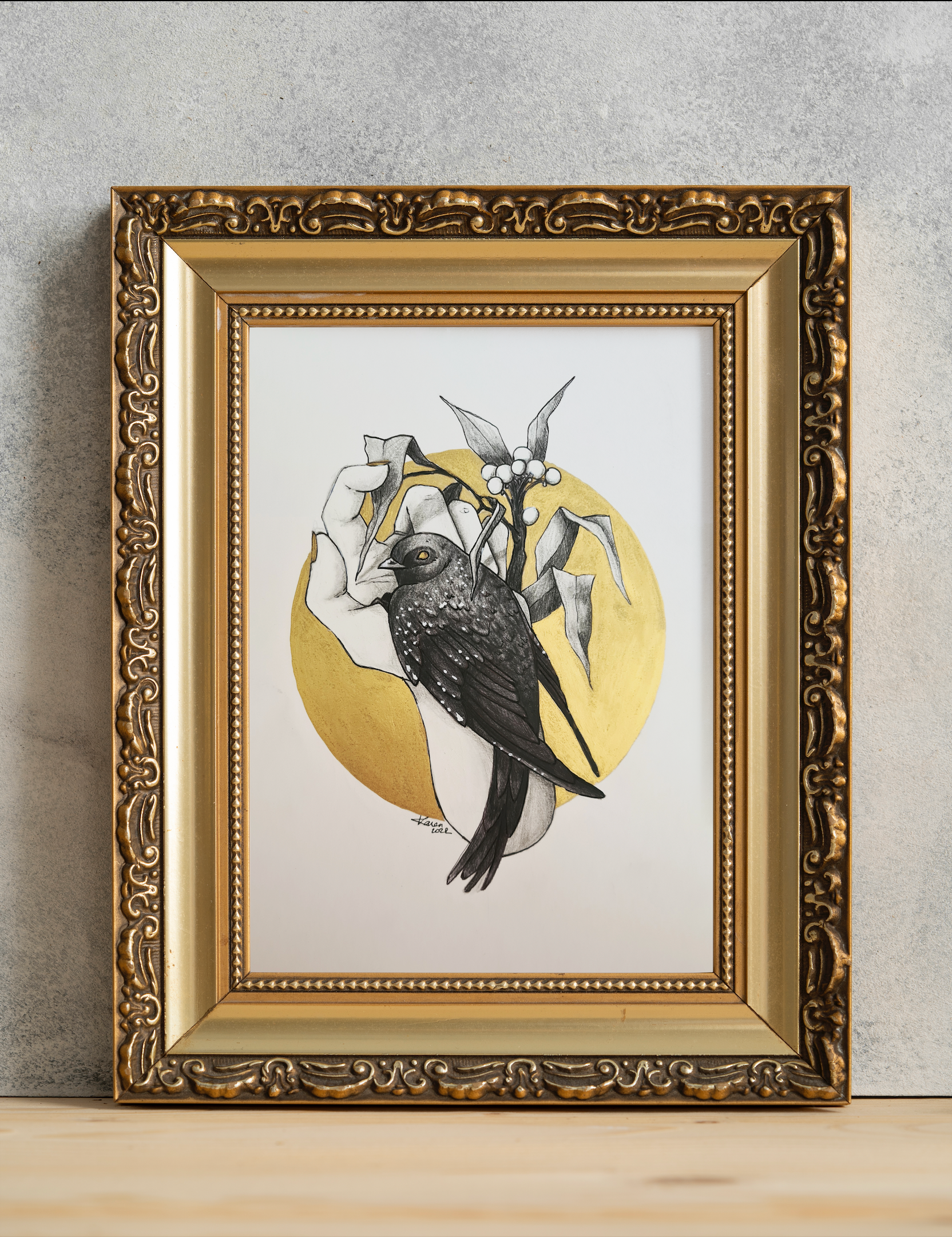 Dessin au pastels secs et aquarelle dorée 21x29,7cm (vendu non encadré)